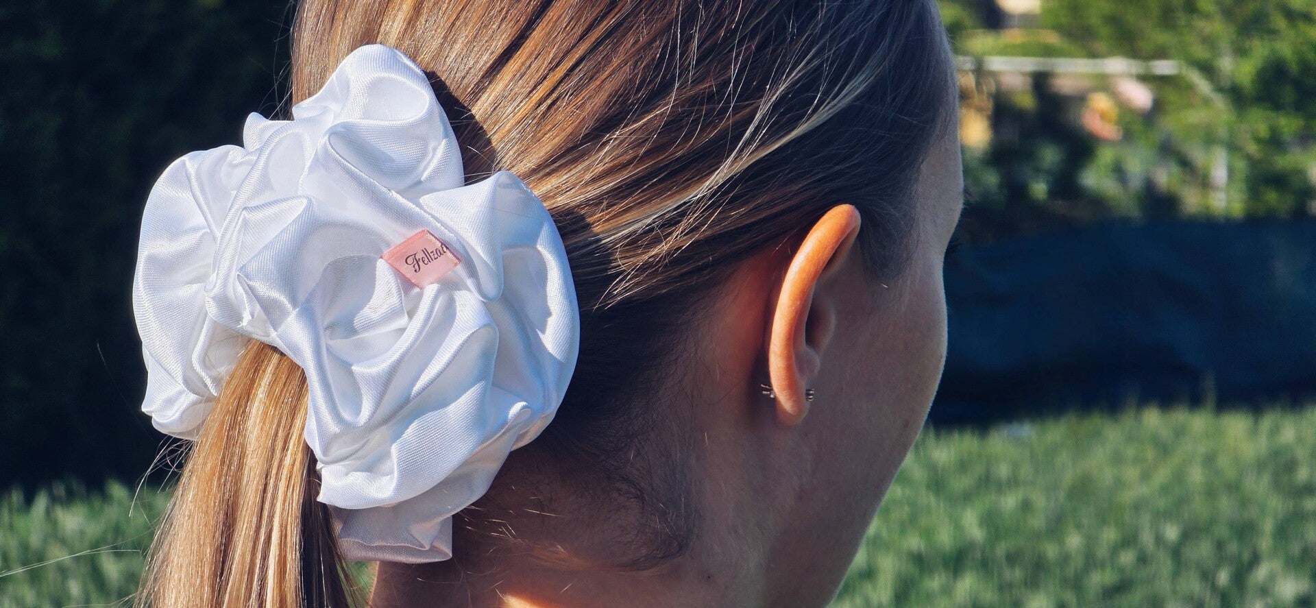 Setze auf zeitlose Schönheit mit unserem weißen Satin-Scrunchie und verleihe deinen Frisuren einen Hauch von purer Eleganz!